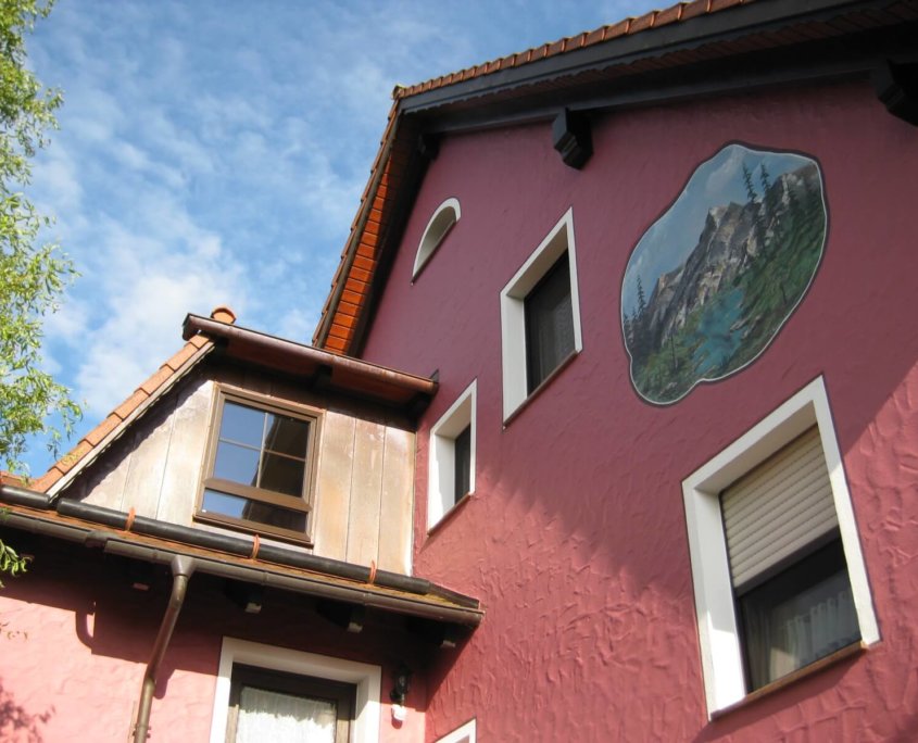 Freundlich und hell präsentiert sich die Kaiser’s Castle Studiowohnung auf rund 160 m². Die moderne Ferienwohnung befindet sich im Dachgeschoss des Haupthauses. Das Besondere dieser Ferienwohnung birgt der großzügige Schnitt. So genießen Sie das herrlich weitläufige Studiozimmer, ausgestattet mit Doppelbett und separater Singleküche. Das zweite Schlafzimmer bietet ebenfalls wertvollen Freiraum mit gemütlichem Doppelbett. In jedem Wohn-/Schlafzimmer und auch im Bad erwartet Sie ein TV-Gerät. Zusätzliche Schlafplätze finden sich mit der Doppelschlafcouch im Wohnzimmer. Das Badezimmer verfügt über eine einladende Eckbadewanne sowie Dusche, WC und Bidet. In römisch-italienischem Stil gehalten, strahlt das Bad ein gemütliches Ambiente aus. Betont von ausgewähltem Mobiliar aus Holz. Auch die Wohnraumküche lässt keine Wünsche offen. Hier verfügen Sie über Spülmaschine, Backofen, Cerankochfeld und Kaffeemaschine. Machen Sie es sich auf der großzügigen Dachterrasse gemütlich und genießen auch den kleinen Balkon. Hier in Franken, umgeben von der Schönheit der Natur, tanken Sie frische Energie!