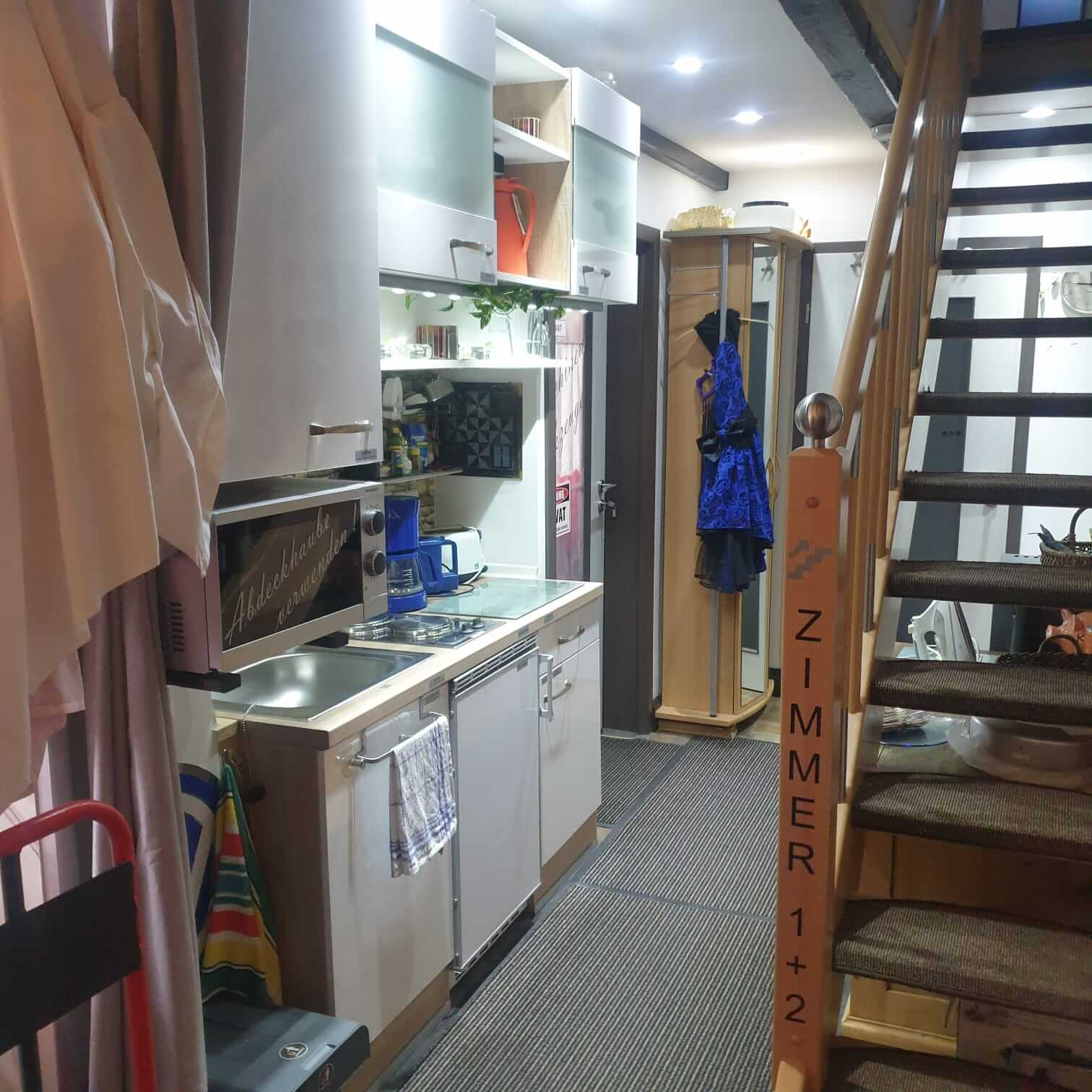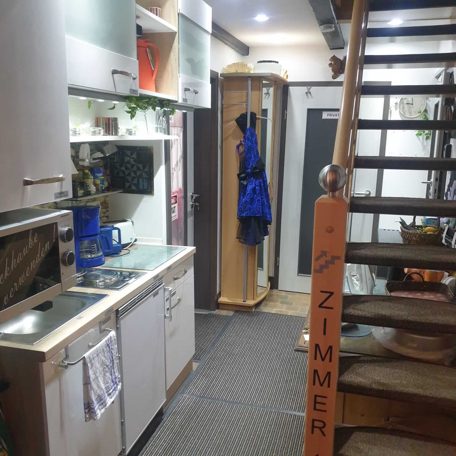 Das WC mit Urlaubsflair liegt zwischen Singlestudio 1 und Singlestudio 2 im Gang. Es steht beiden Studios zur Nutzung frei. Im Erdgeschoss befindet sich der gemeinsame Duschraum mit Fenster und WC. Außerdem steht Ihnen eine Waschmaschine zur Verfügung. (Eigenes Bad möglich, wenn verfügbar, für + 15 € Aufpreis/Aufenthalt)
