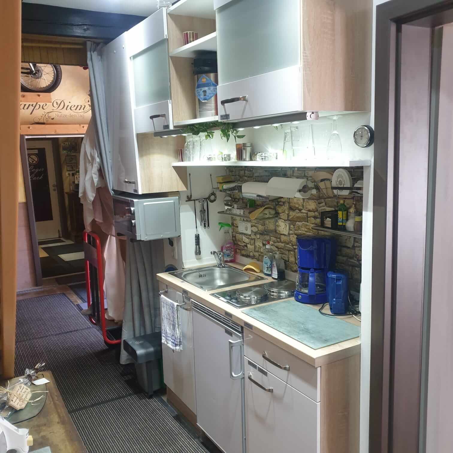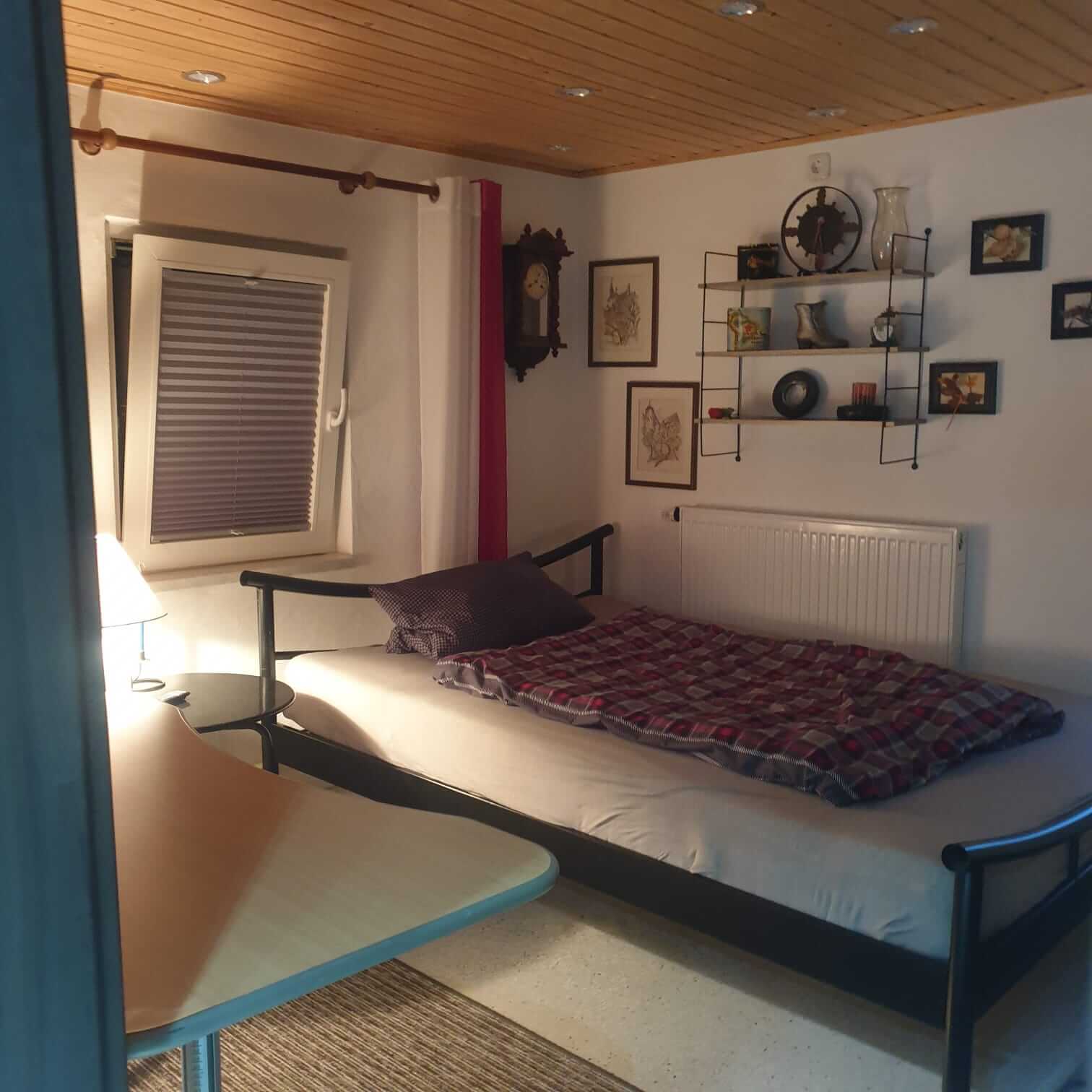 In Singlestudio 3 lässt es sich als Einzelperson wunderbar entschleunigen. Die Ferienwohnung bietet moderne Austattung auf 15 m². Über die stilvolle Scheune gelangen Sie ins Studio im 1. Stock. Spürbare Erholung verspricht das gemütliche Einzelbett mit einer angenehmen Leselampe. Im Studio befinden sich auch ein Flachbild-TV, ein Kleiderschrank und eine Singleküche + Kühlschrank. Gemütlichen Kochaktionen steht nichts im Wege. Für die helle Raumstimmung sorgt das großzügige Dachfenster. Selbstverständlich können Sie das Studio flexibel per Knopfdruck verdunkeln.
